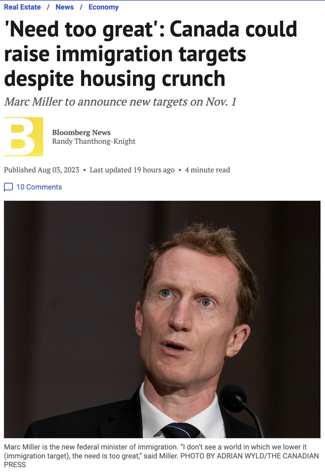 今年11月1日,米勒预计会宣布新的移民目标,在采访中,米勒还表示:“没有理由会减少移民数量,因为需求量太大了!”“我正在考虑上调移民目标,但是可以肯定的是,我不认为我们会降低这个目标。”